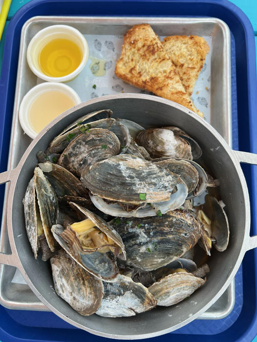 Clam Bar is open daily, rain or shine, from 11 a.m. to 8 p.m.